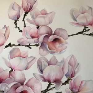 Ibland är jag sugen på att måla vackra saker. Fina former i mjuka färger. Ibland blir det till former som liknar blommor. Min formfavorit bland de blommorna är magnolian.